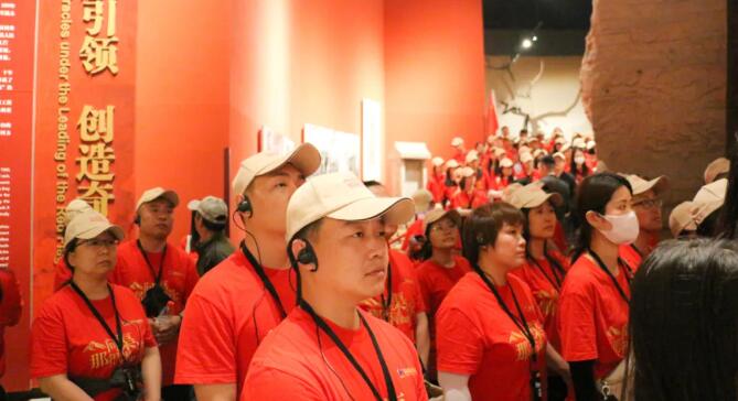 首先,大家來到本次活動的站——紅旗渠紀(jì)念館,實(shí)地參觀了當(dāng)年修渠時留下的珍貴照片。在講解下,通過千年旱魔、太行豐碑、山河巨變、精神永恒五個展廳回顧了當(dāng)年的修渠歷程。一幅幅生動的歷史照片記錄了林州百姓艱苦奮斗的堅(jiān)毅精神;一件件珍貴的修渠文物無聲地表達(dá)了林州百姓人定勝天的頑強(qiáng)意志,展現(xiàn)了黨帶領(lǐng)林州人民十年奮戰(zhàn)、改造河山的震撼場景,也唱響了紅旗渠的強(qiáng)音。